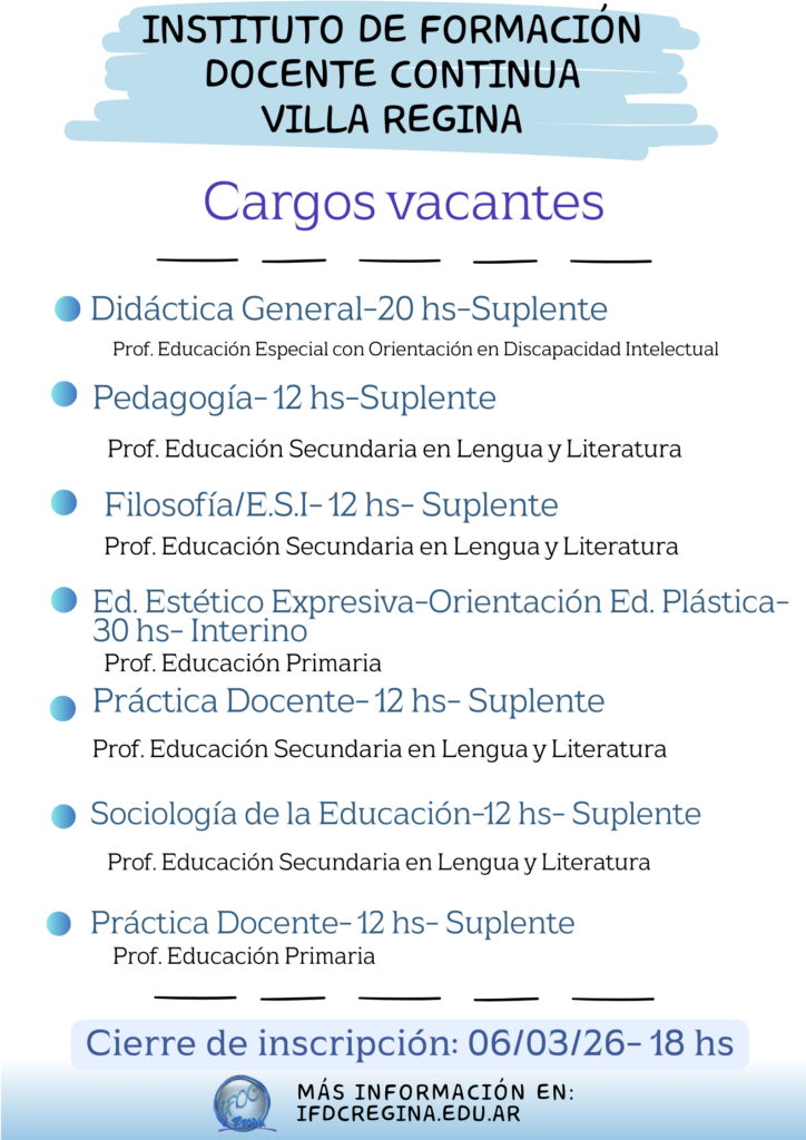 Cierre de inscripción: 06/03/26 a las 18.00hs.